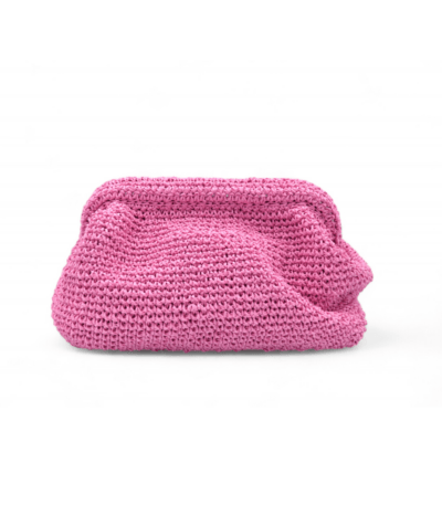 Geantă corai deschis croșetată manual cu mânere rotunde aurii