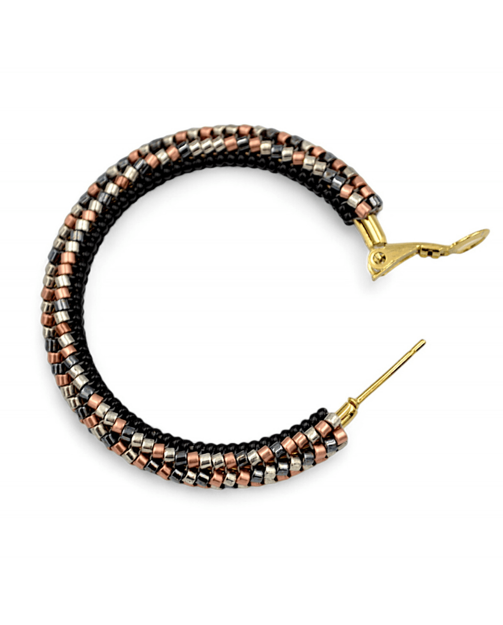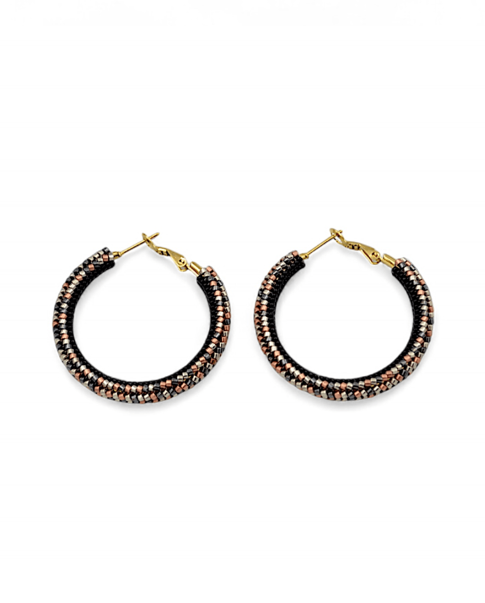 Cu un design rotund elegant și mărgele negre de calitate, acești cercei sunt simbolul rafinamentului minimalist. Perfecți pentru a fi purtați la birou sau la o ieșire elegantă în oraș, acești cercei adaugă un plus de stil fără a fi ostentativi. O alegere versatilă pentru femeia modernă.